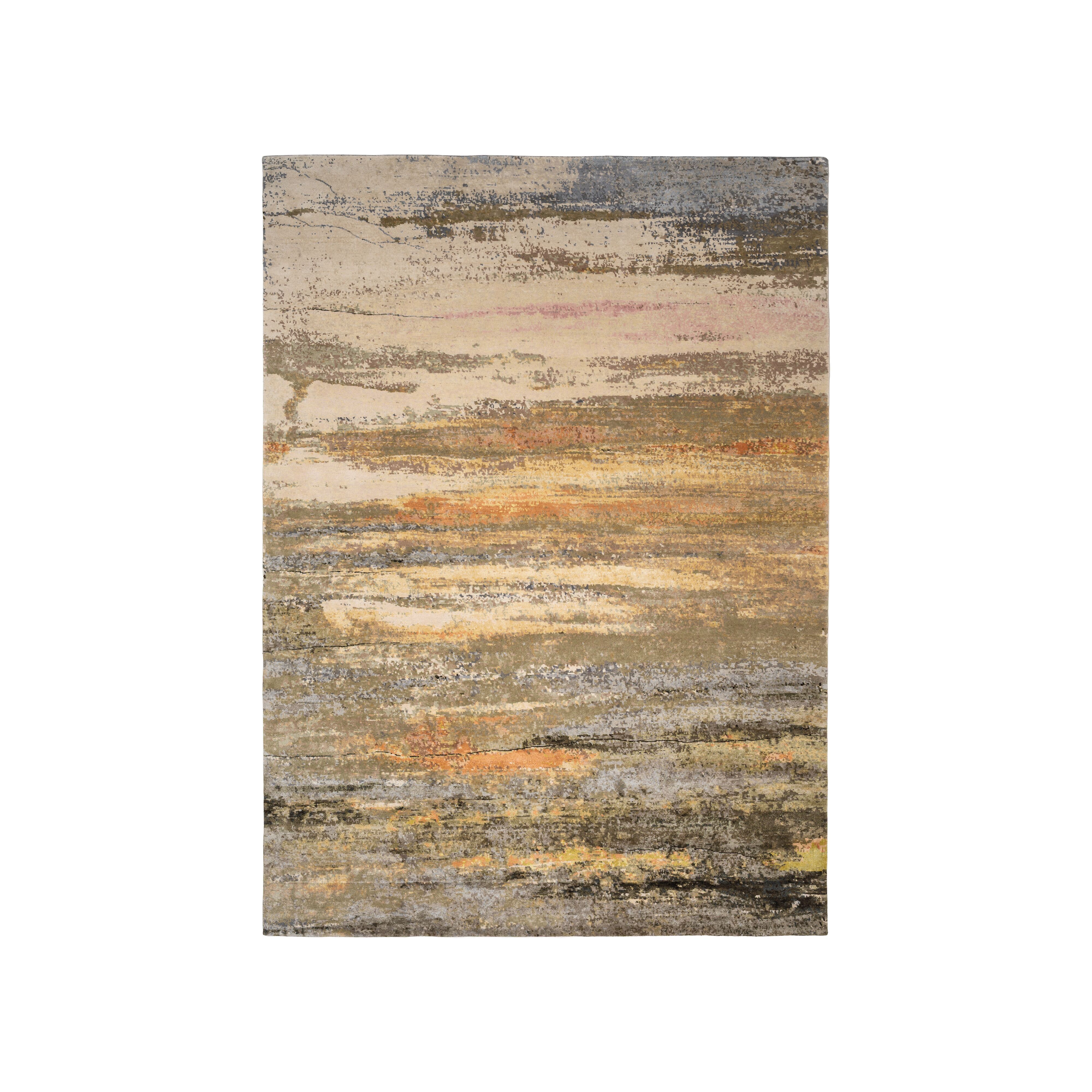 Low-pile carpet made from 58% wool, 37% silk and 5% nettle.